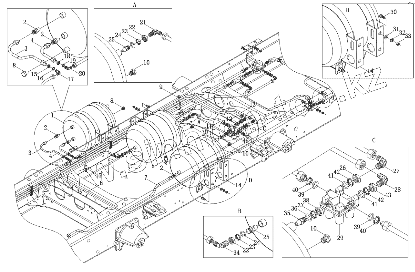 Каталог запасных частей к технике: Foton-BJ1099. Трубопроводы тормозной системы