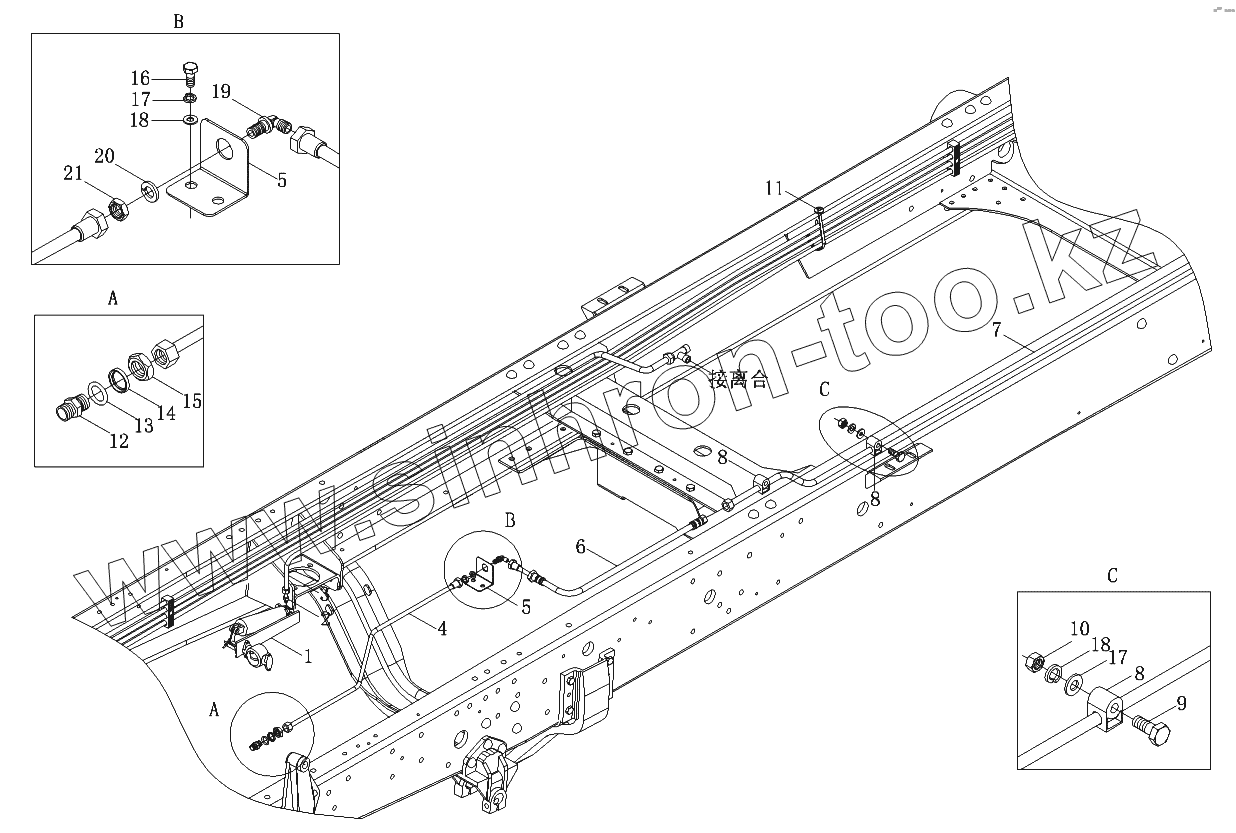 Каталог запасных частей к технике: Foton-BJ1099. Трубопроводы тормозной системы