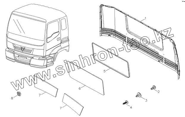 Каталог запасных частей к технике: Foton-BJ3251DLPJB. Арматура боковой панели