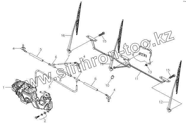 Каталог запасных частей к технике: Foton-BJ3251DLPJB. Стеклоочиститель и омыватель