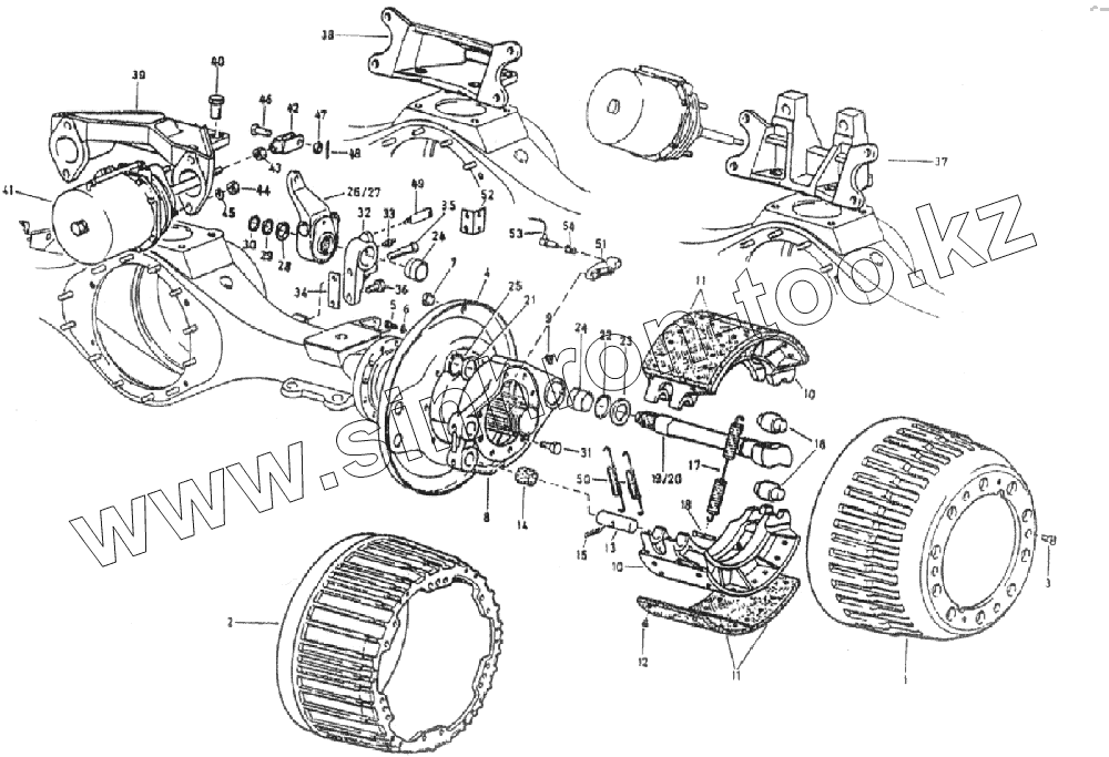 Каталог запасных частей к технике: Foton-BJ3251DLPJB. Тормозной механизм заднего моста