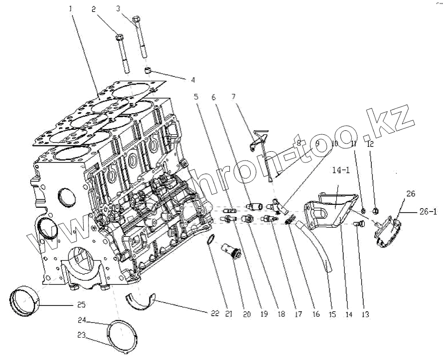 Каталог запасных частей к технике: Foton Оllin Express I. 1S10591000115 Блок-картер 1