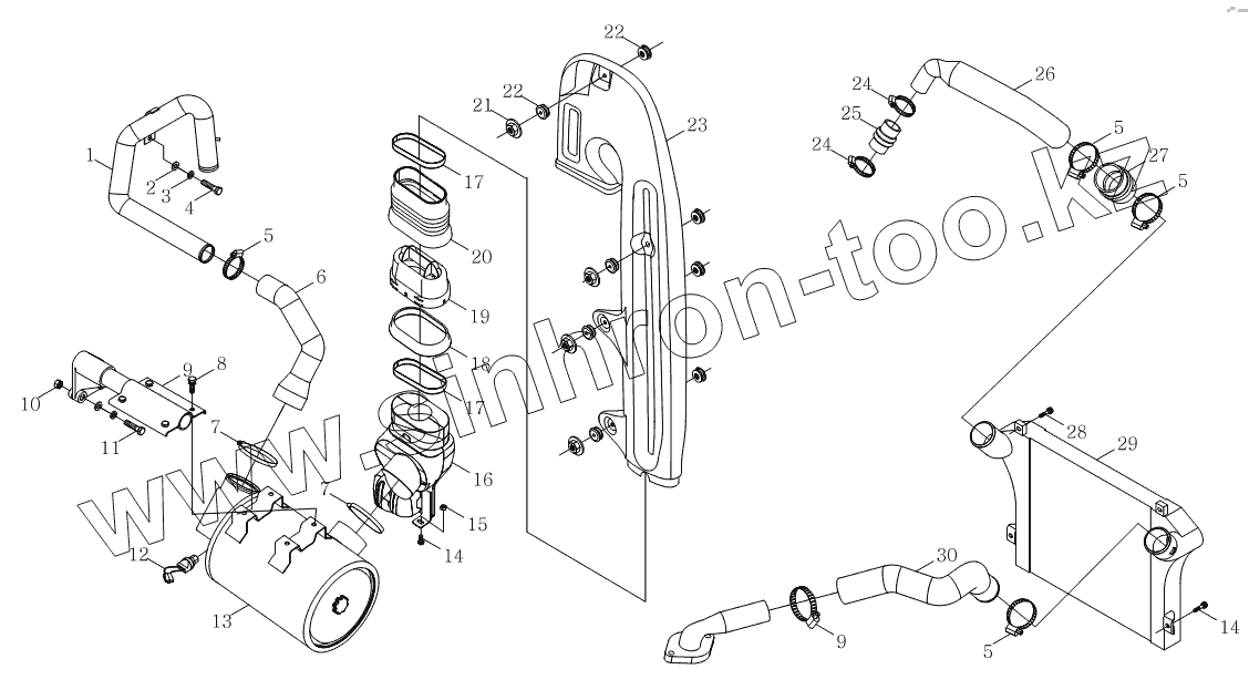 Каталог запасных частей к технике: Foton Оllin Express I. 1S10591190119 Впускное устройство