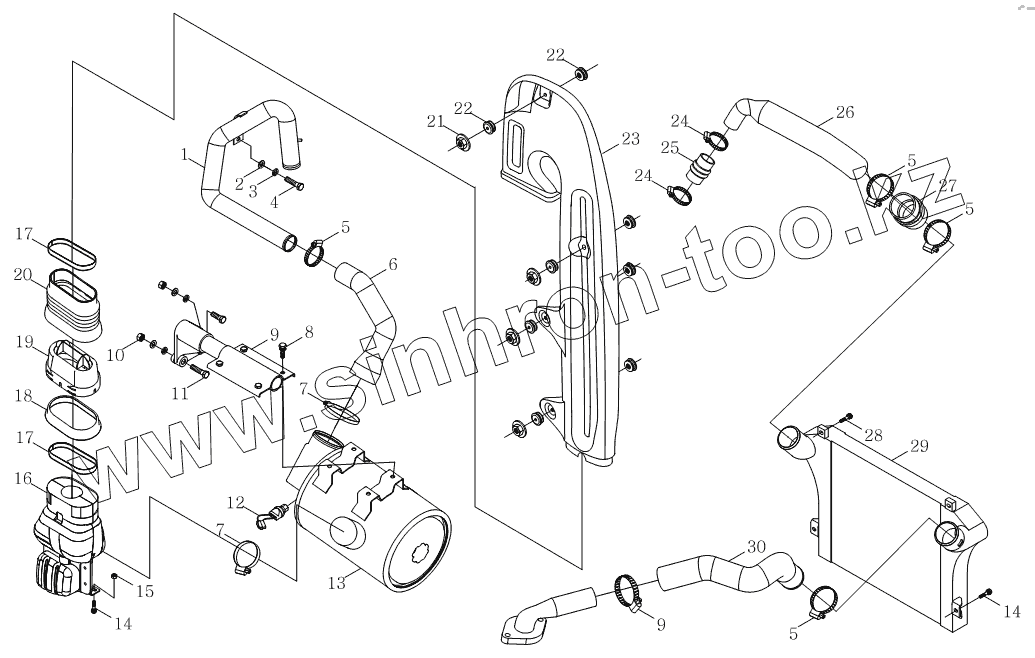 Каталог запасных частей к технике: Foton Оllin Express I. 1S10591190120 Впускное устройство