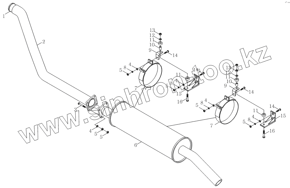 Каталог запасных частей к технике: Foton Оllin Express I. 1S10591200111 Выпускное устройство