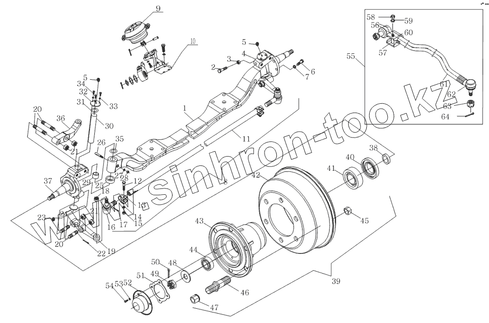 Каталог запасных частей к технике: Foton Оllin Express I. 1S10593000104 Передний мост в сборе