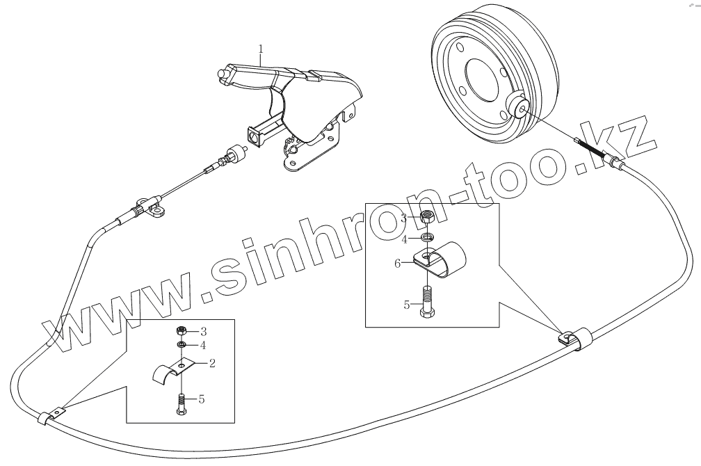 Каталог запасных частей к технике: Foton Оllin Express I. 1S10593580104 Механизм управления стояночным торможением