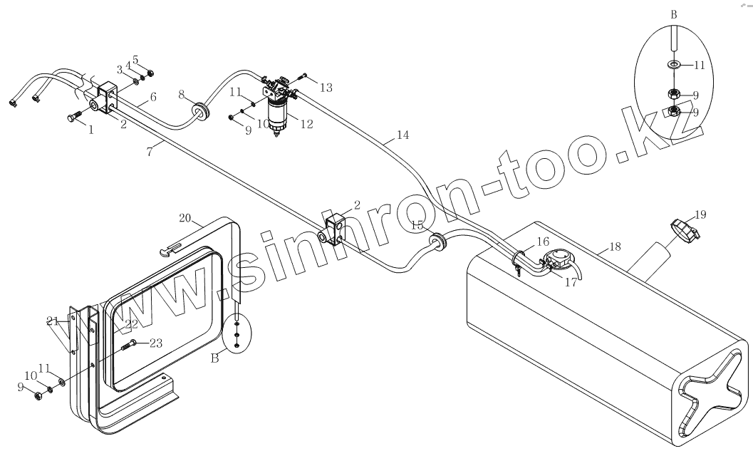 Каталог запасных частей к технике: Foton Оllin Express I. 1S10691100107 Топливная система