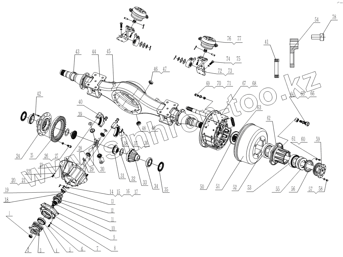 Каталог запасных частей к технике: Foton Оllin Express I. 1S10692400115 Задний мост