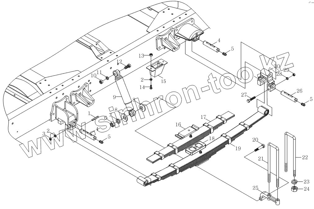 Каталог запасных частей к технике: Foton Оllin Express I. 1S10692950102 Задняя подвеска