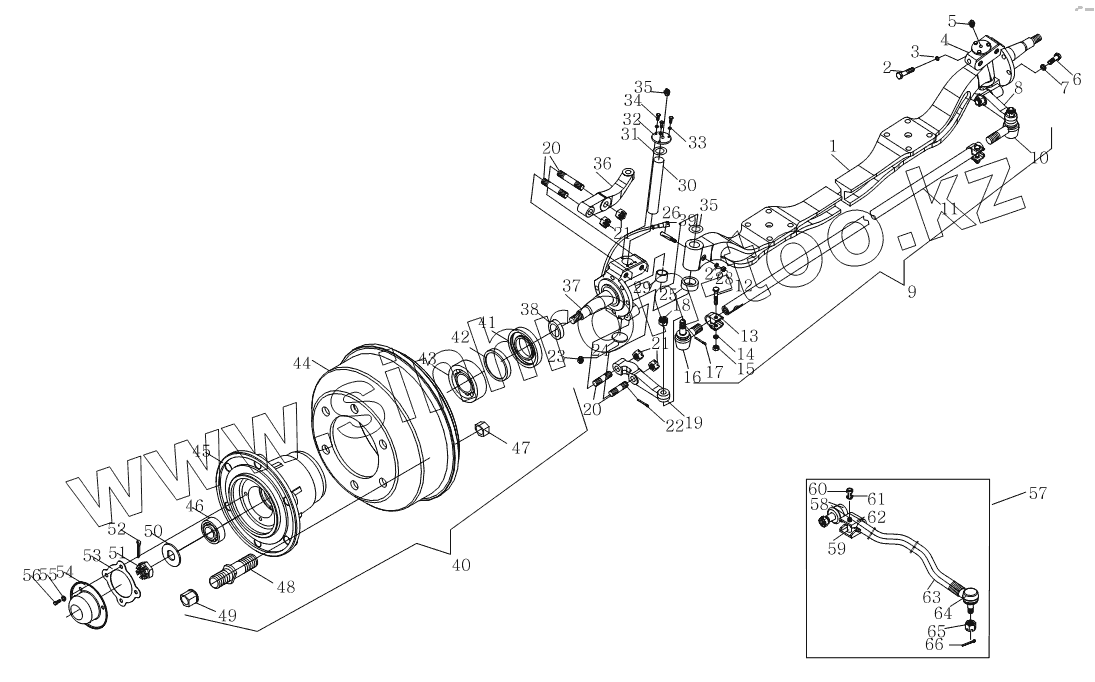 Каталог запасных частей к технике: Foton Оllin Express I. 1S10693000104 Передний мост в сборе
