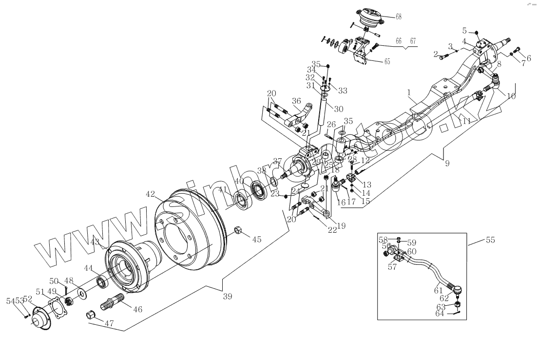 Каталог запасных частей к технике: Foton Оllin Express I. 1S10693000107 Передний мост в сборе