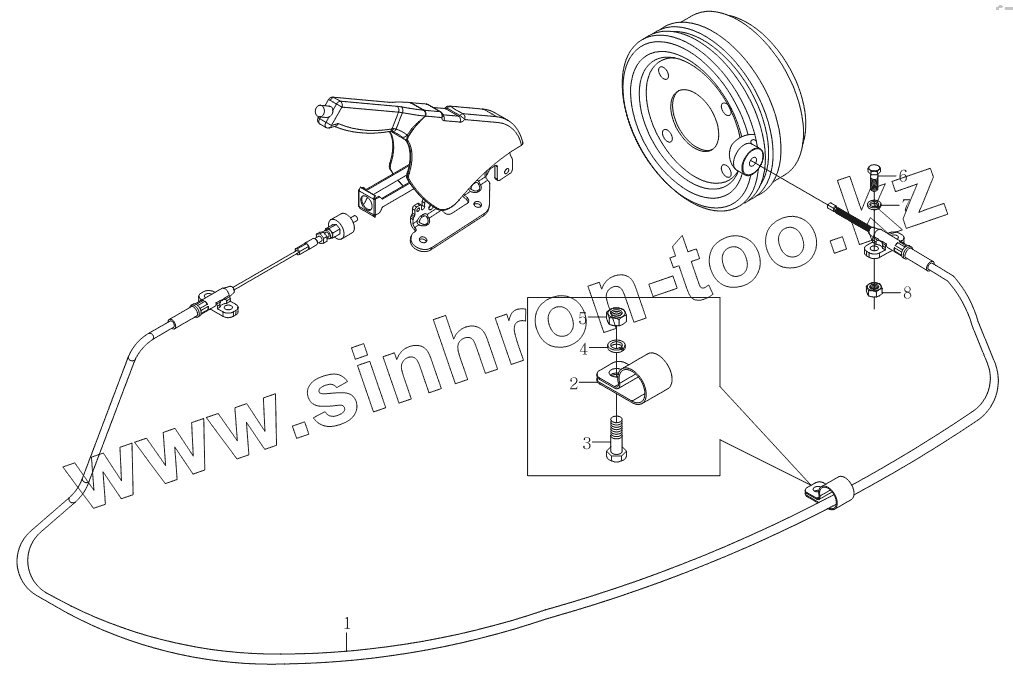 Каталог запасных частей к технике: Foton Оllin Express I. 1S10693580103 Механизм управления стояночным тормозом