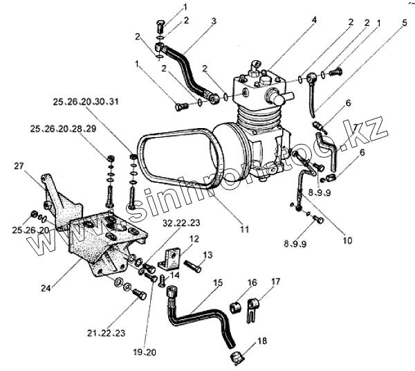 Каталог запасных частей к технике: Foton Оllin Express I. 1S10891000112 Воздушный компрессор