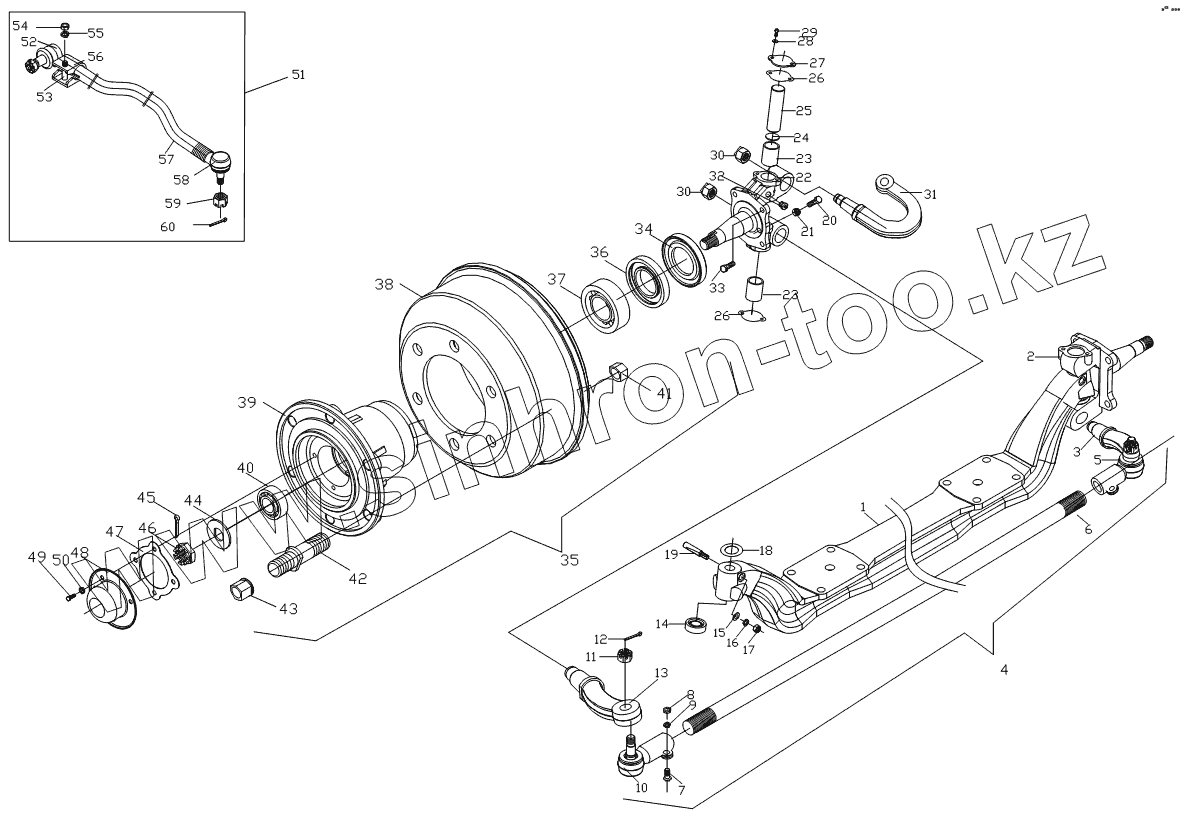 Каталог запасных частей к технике: Foton Оllin Express I. 1S10893000104 Передний мост