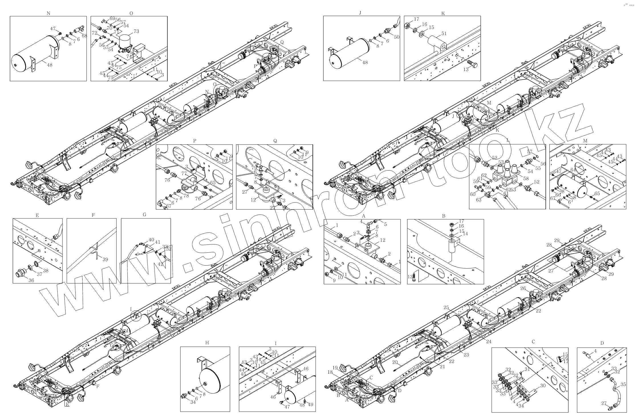 Каталог запасных частей к технике: Foton Оllin Express I. 1S10893560111 Тормозная магистраль (шасси)