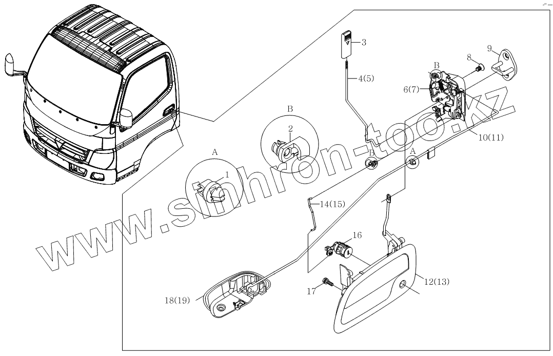 Каталог запасных частей к технике: Foton Оllin Express I. 1SB1806150107 Дверной замок