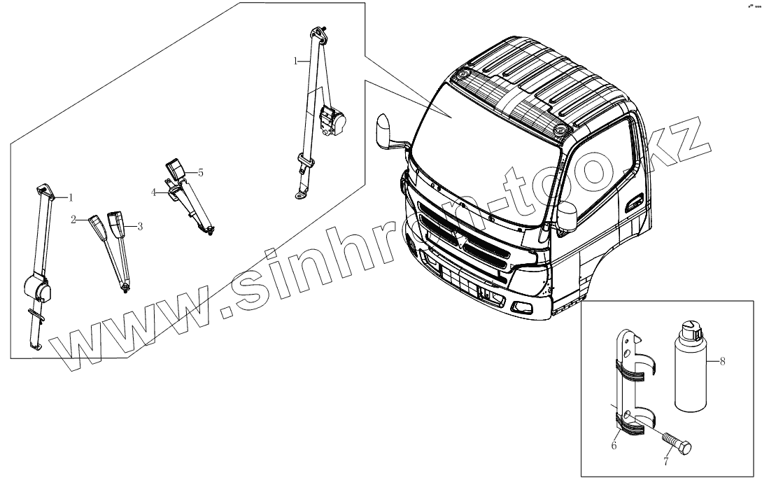 Каталог запасных частей к технике: Foton Оllin Express I. 1SB1808220101 Ремень безопасности, 1SB1808250101 огнетушитель