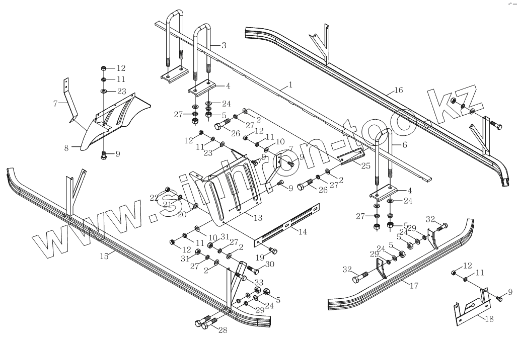 Задняя защитная перила в сборе