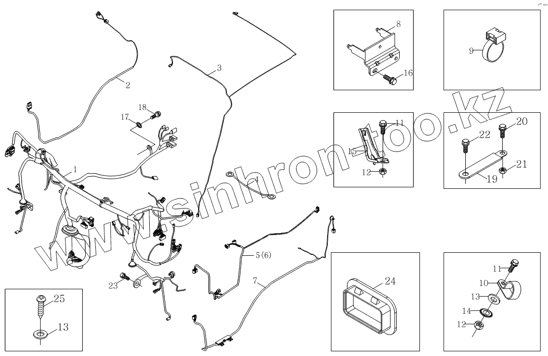 Каталог запасных частей к технике: Foton Оllin Express I. 1SB2003740139, 1SB2003740148 Жгут проводов кузова