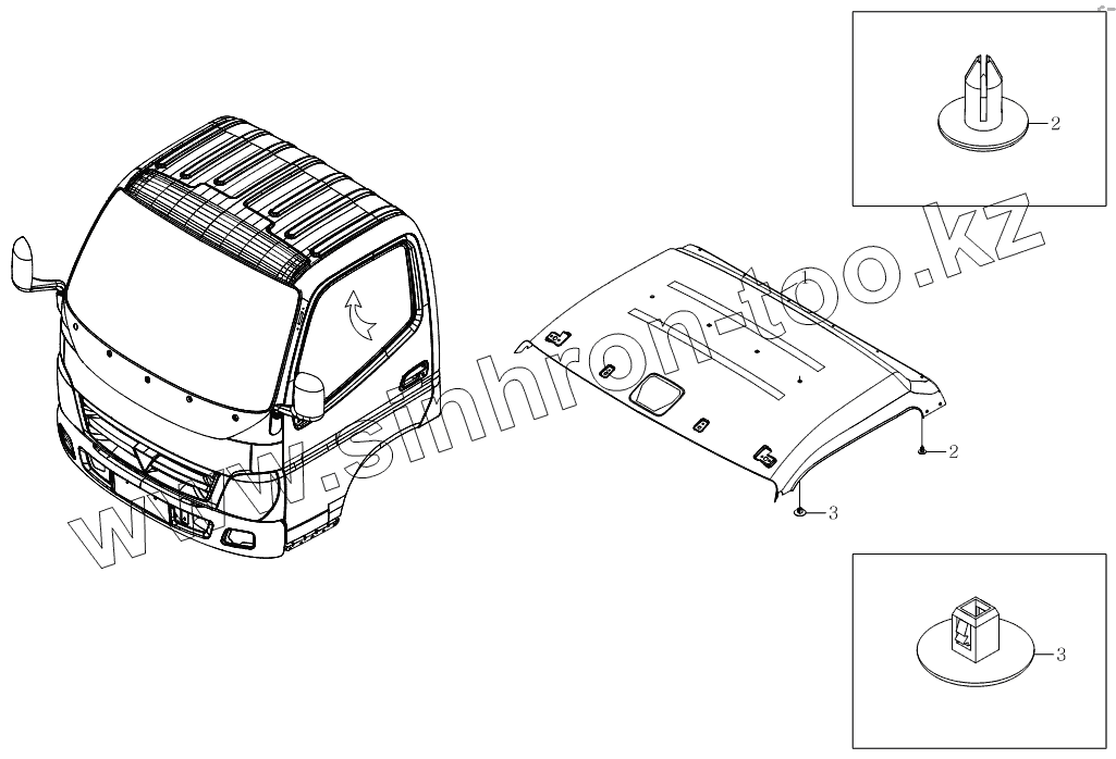 Каталог запасных частей к технике: Foton Оllin Express I. 1SB2005720101 Агрегат верхней крышки