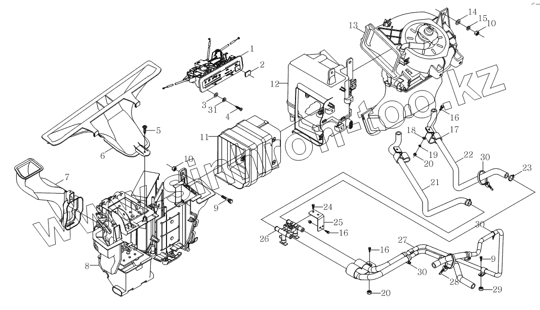 Каталог запасных частей к технике: Foton Оllin Express I. 1SB2008110226 Отопительное устройство