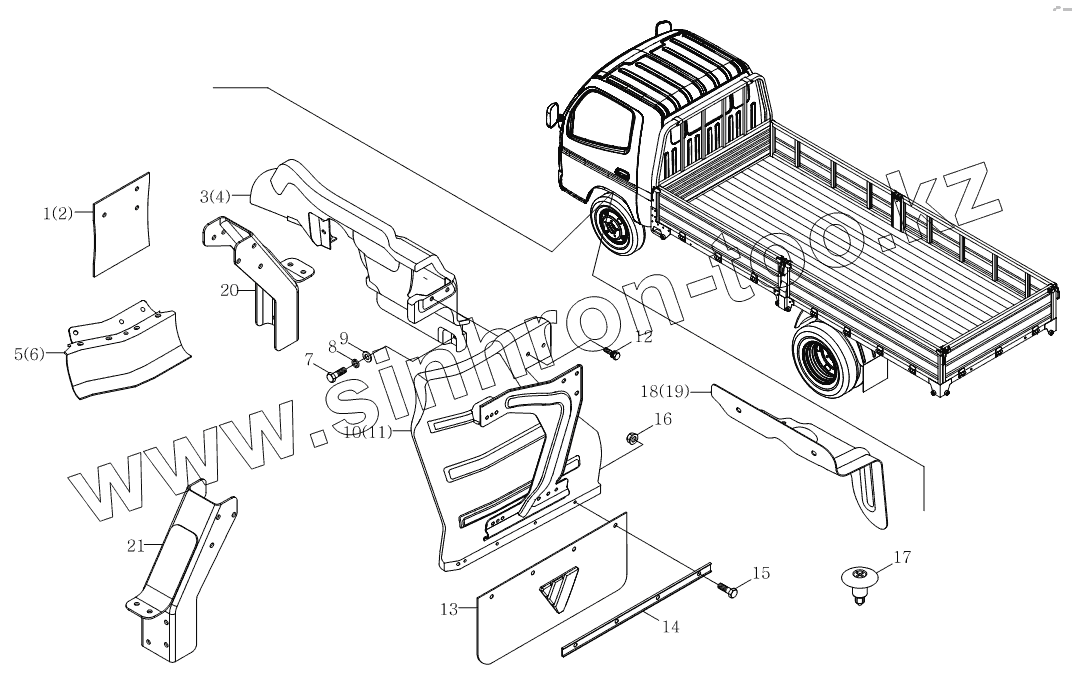 Каталог запасных частей к технике: Foton Оllin Express I. 1SB2008430102 Брызговик колеса