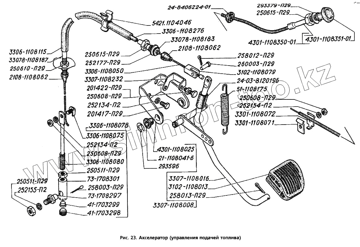 Каталог запасных частей к технике: ГАЗ-3306. Акселератор (управления подачей топлива)