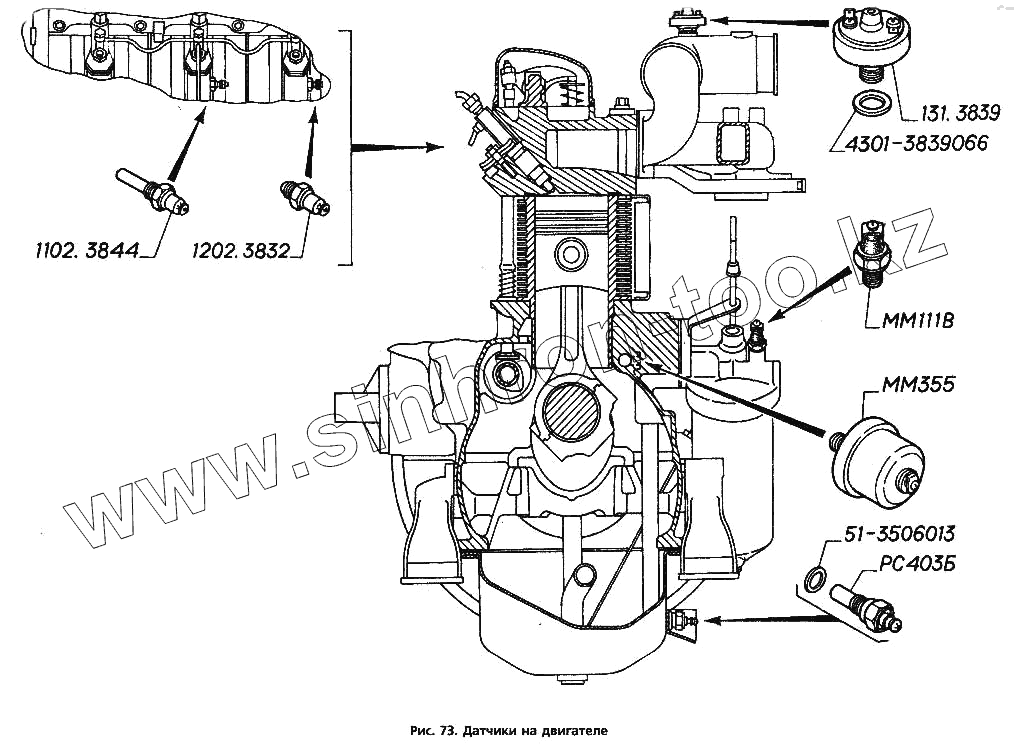 Каталог запасных частей к технике: ГАЗ-3306. Датчики на двигателе