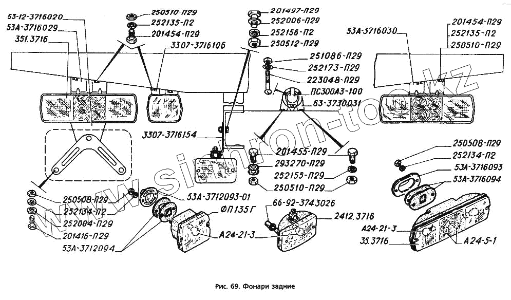 Каталог запасных частей к технике: ГАЗ-3306. Фонари задние