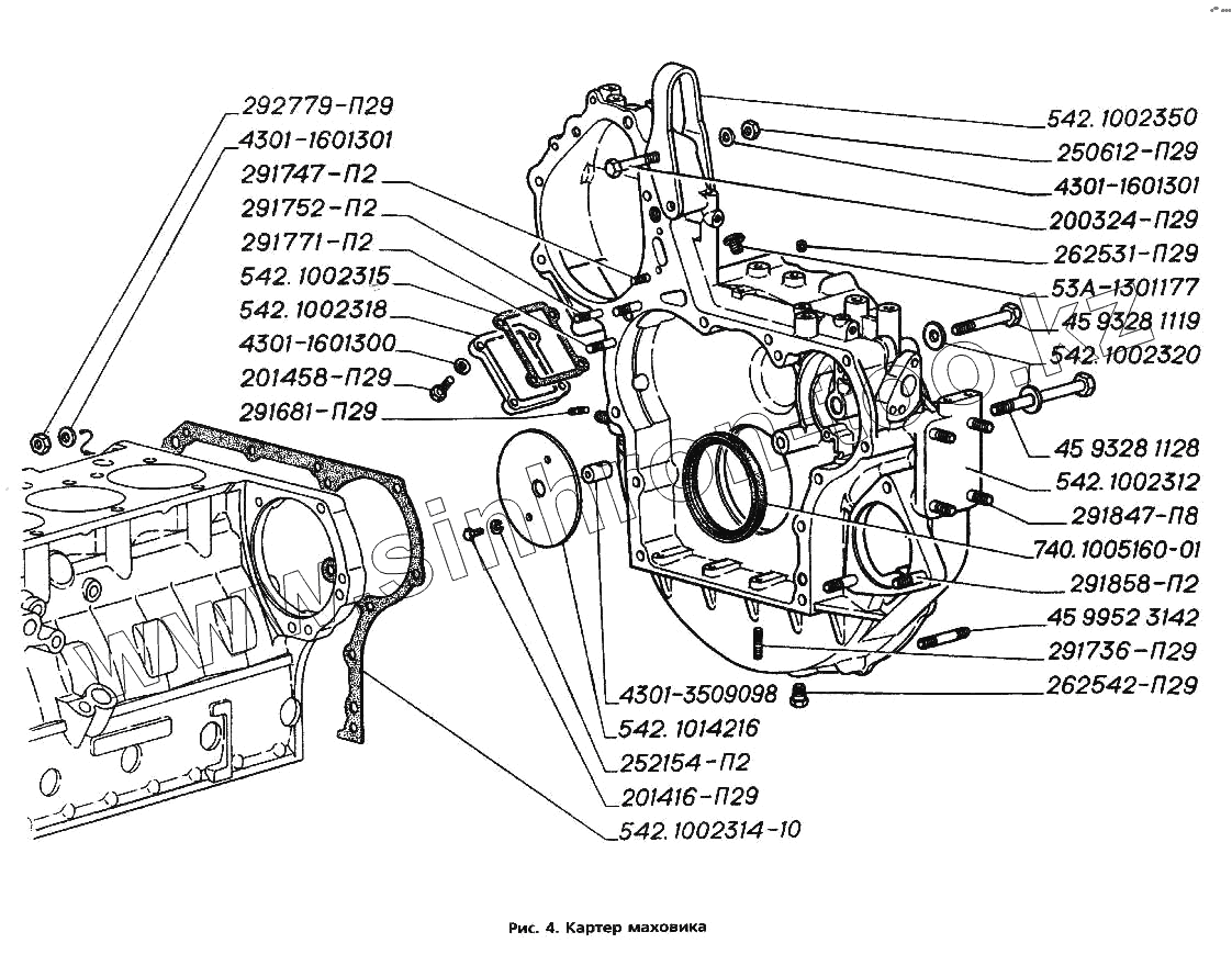 Каталог запасных частей к технике: ГАЗ-3306. Картер маховика