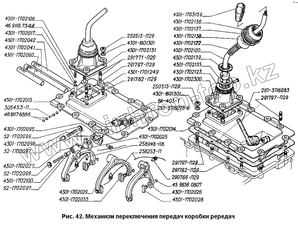 Каталог запасных частей к технике: ГАЗ-3306. Механизм переключения передач коробки передач