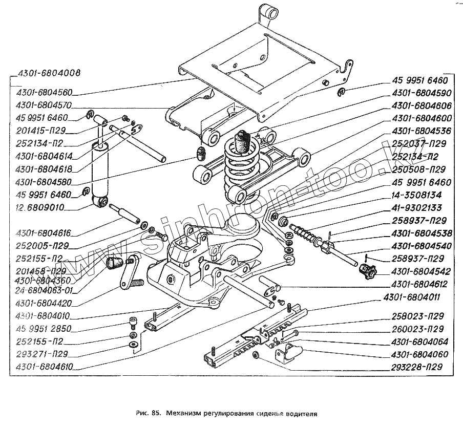 Каталог запасных частей к технике: ГАЗ-3306. Механизм регулирования сиденья водителя