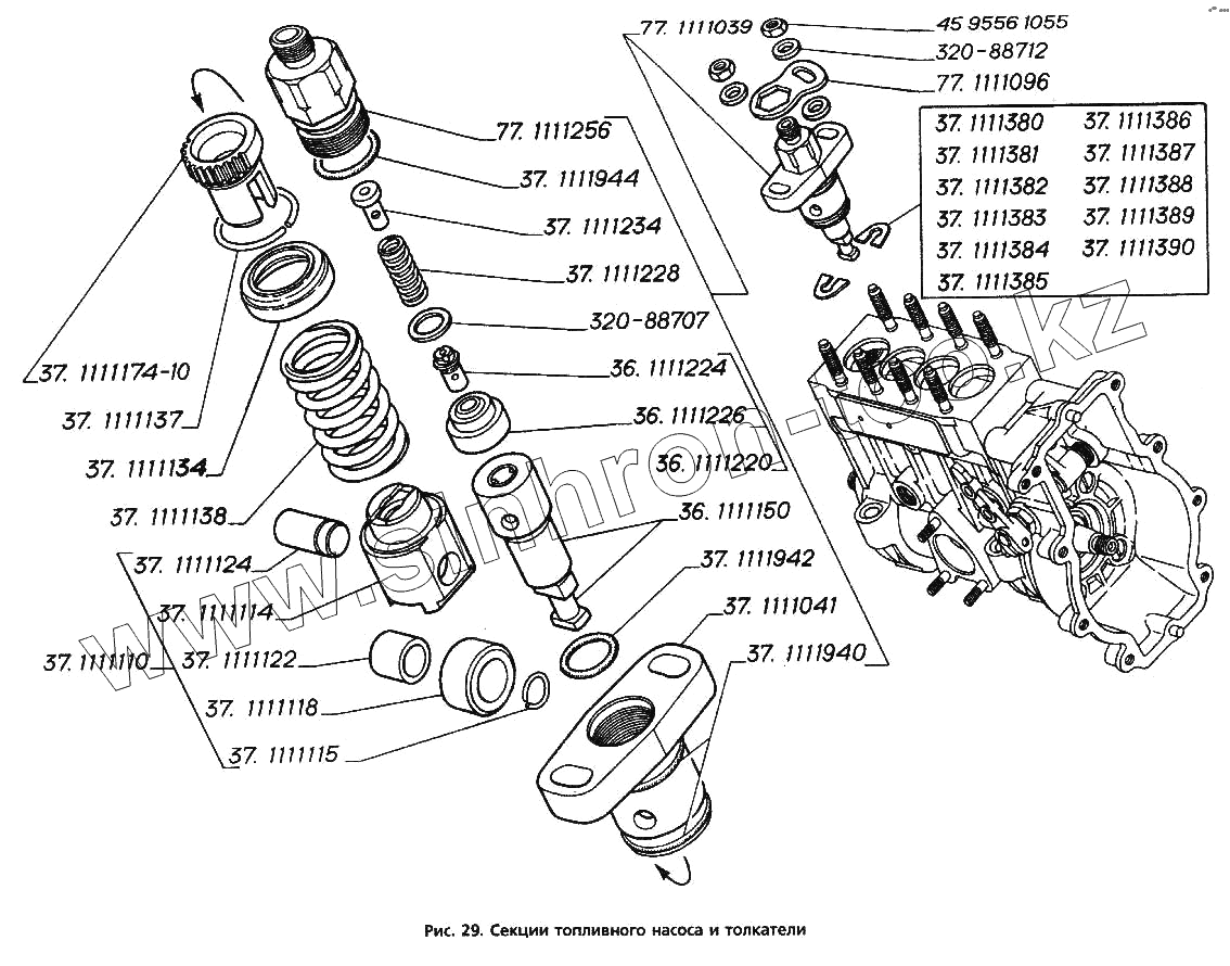 Каталог запасных частей к технике: ГАЗ-3306. Секции топливного насоса и толкатели