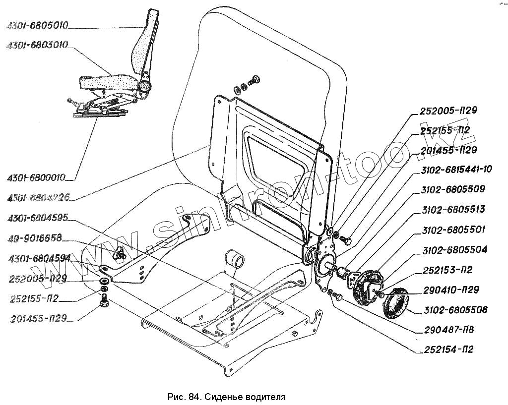 Каталог запасных частей к технике: ГАЗ-3306. Сиденье водителя