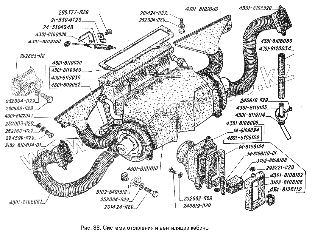 Каталог запасных частей к технике: ГАЗ-3306. Система отопления и вентиляции кабины