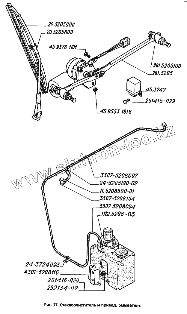 Каталог запасных частей к технике: ГАЗ-3306. Стеклоочиститель и привод, омыватель