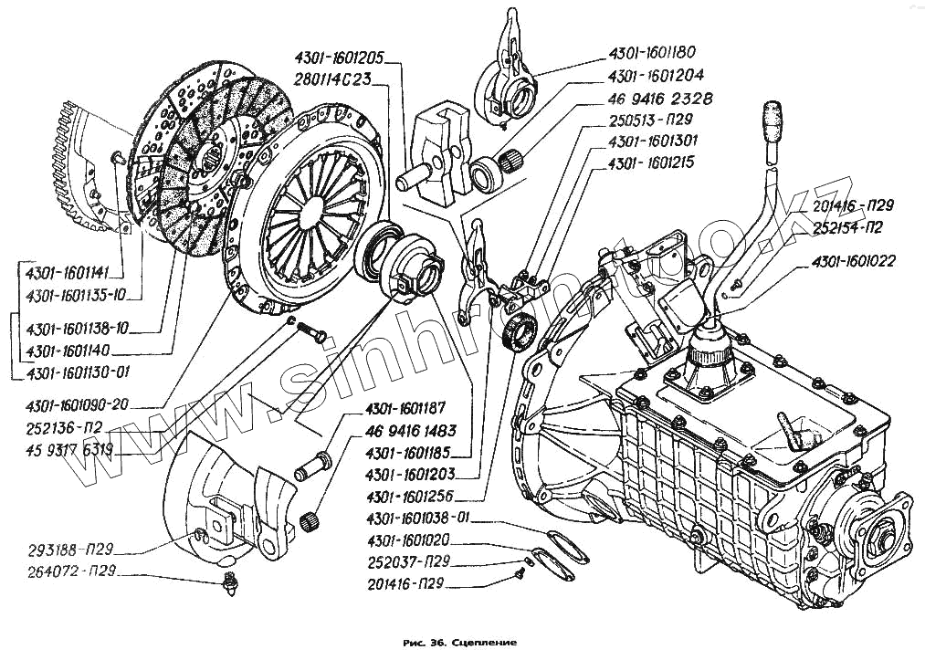 Каталог запасных частей к технике: ГАЗ-3306. Сцепление