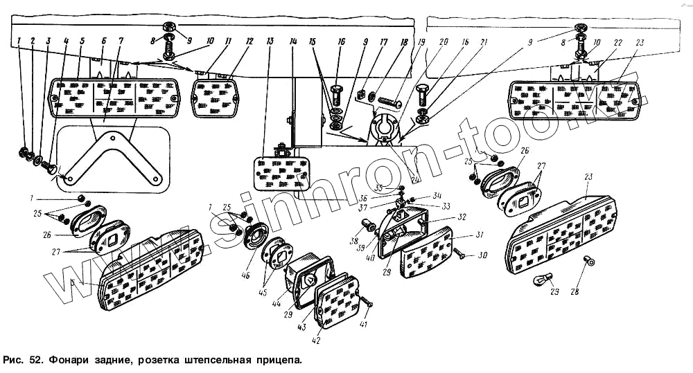 Каталог запасных частей к технике: ГАЗ-3307. Фонари задние, розетка штепсельная прицепа
