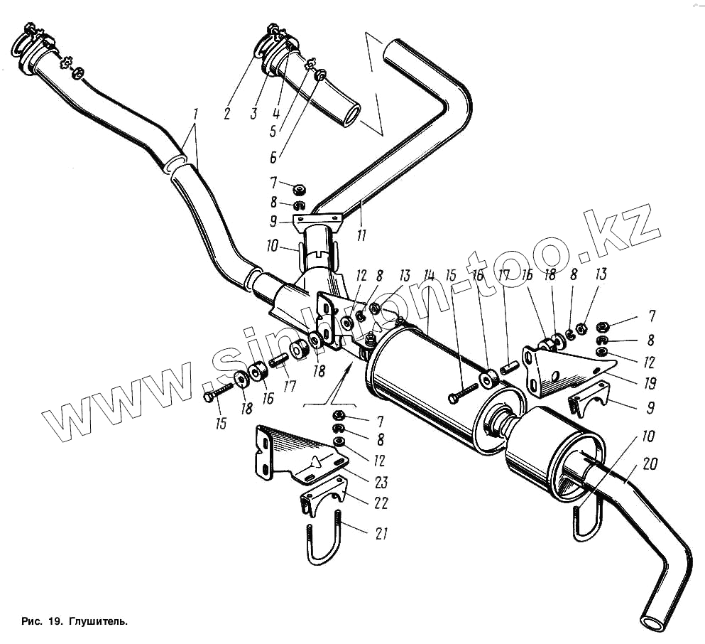 Каталог запасных частей к технике: ГАЗ-3307. Глушитель