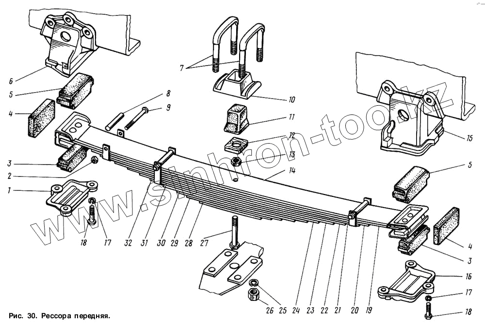 Каталог запасных частей к технике: ГАЗ-3307. Рессора передняя