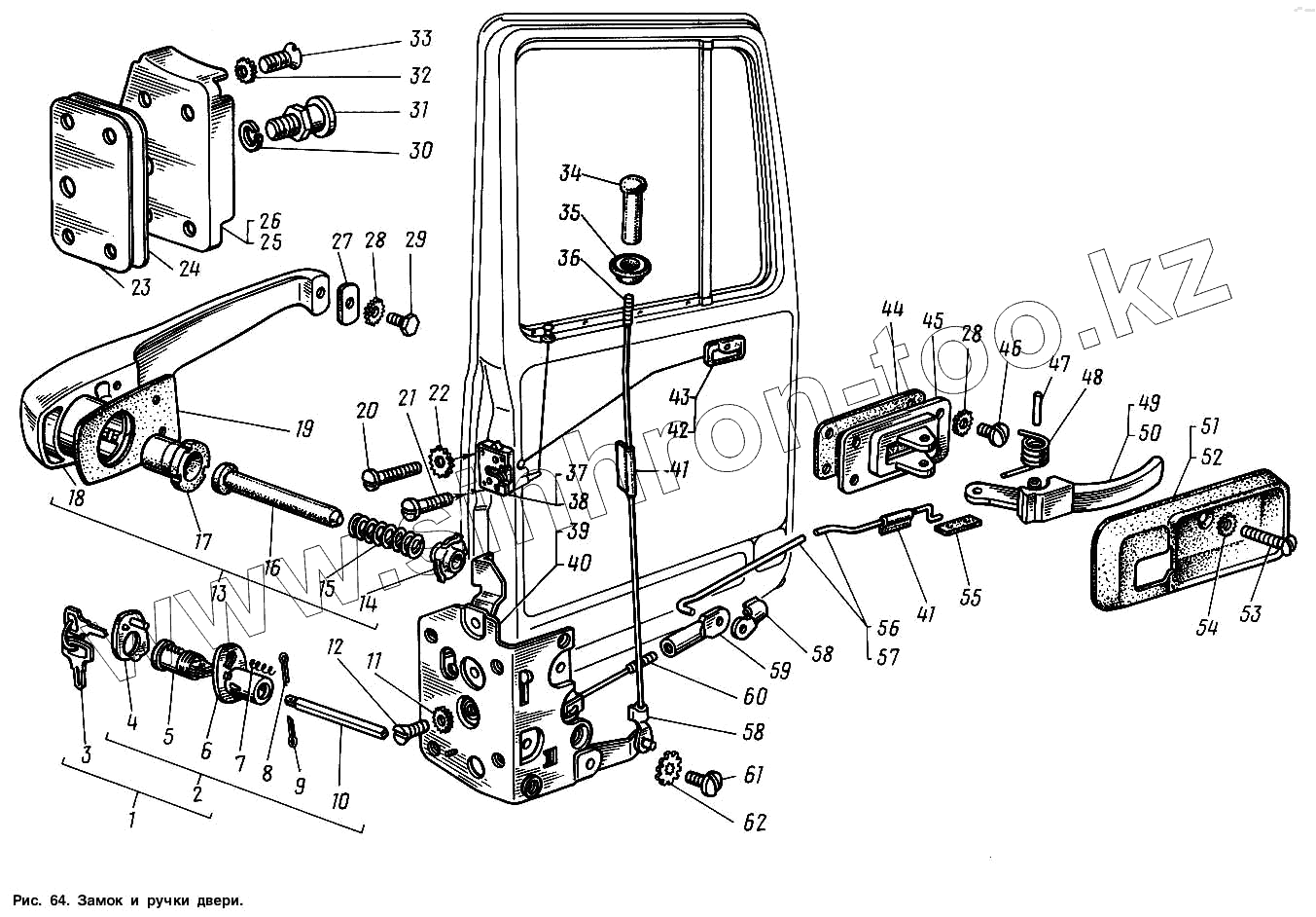 Каталог запасных частей к технике: ГАЗ-3307. Замок и ручки двери