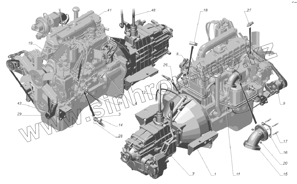 Каталог запасных частей к технике: ГАЗ-33081. 33081-1000252-100. Двигатель полностью укомплектованный