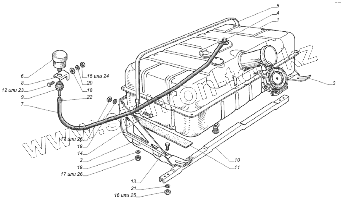 Каталог запасных частей к технике: ГАЗ-33081. 33081-1101001-40. Установка топливного бака