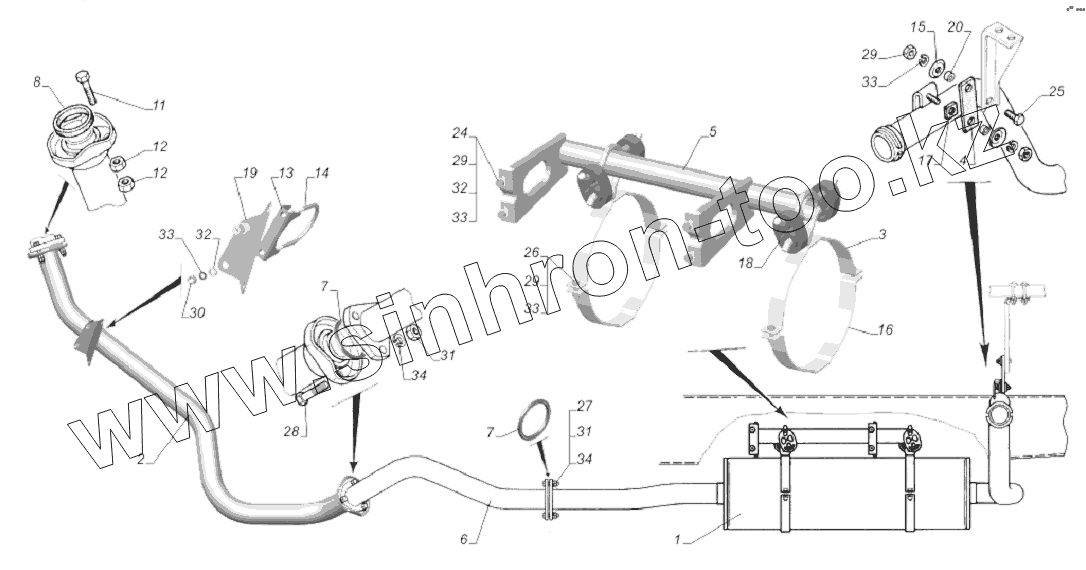 33081-1200001-71. Установка системы выпуска газов