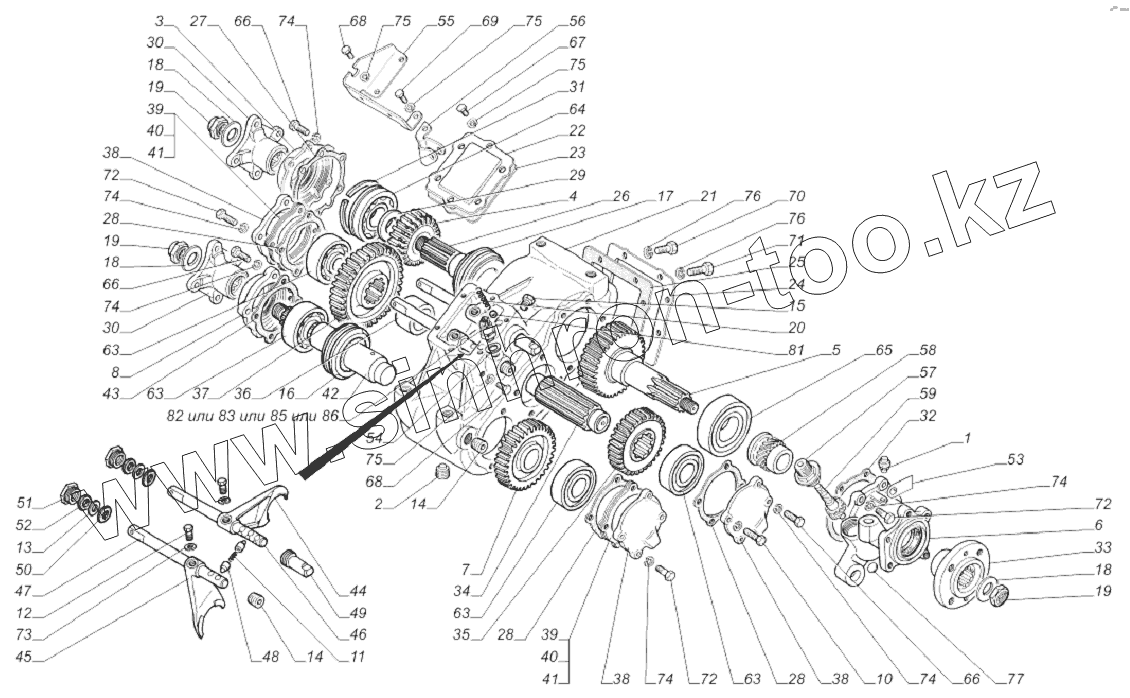 Каталог запасных частей к технике: ГАЗ-33081. 33081-1800013-20. Коробка раздаточная