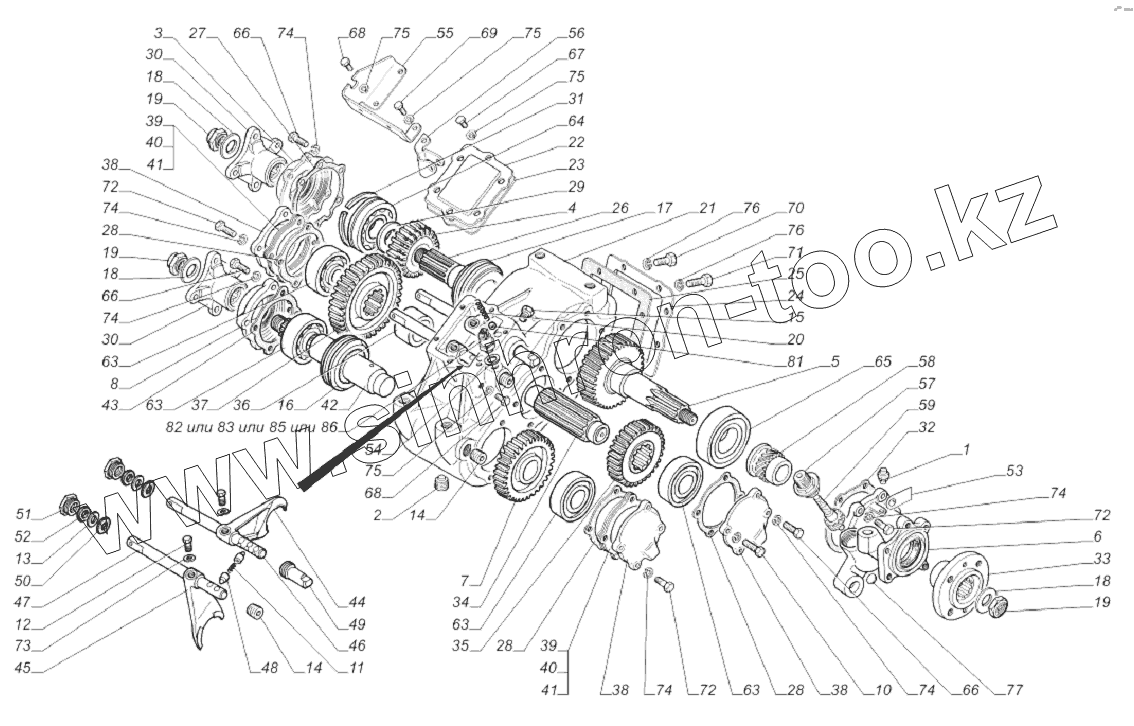 Каталог запасных частей к технике: ГАЗ-33081. 33081-1800013-50. Коробка раздаточная