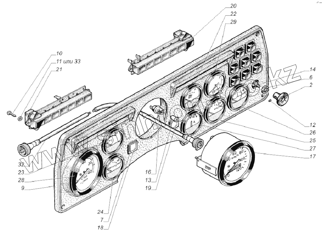 Каталог запасных частей к технике: ГАЗ-33081. 33081-3805010-50. Щиток приборов