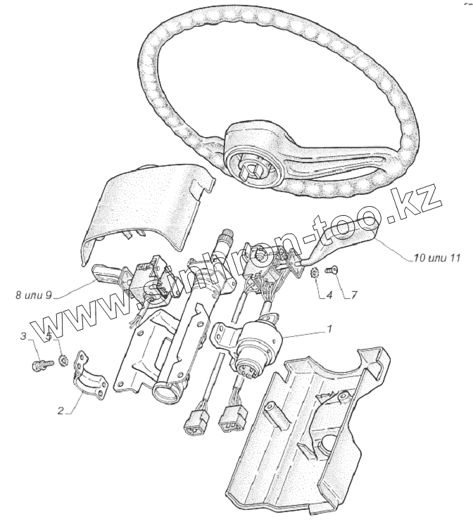 Каталог запасных частей к технике: ГАЗ-33081. 3308-3704002. Установка выключателя зажигания