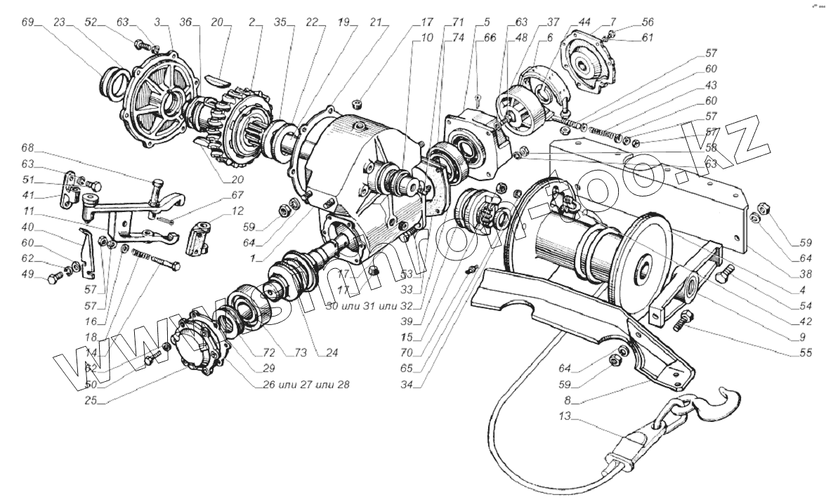 Каталог запасных частей к технике: ГАЗ-33081. 3308-4501010. Лебедка с редуктором